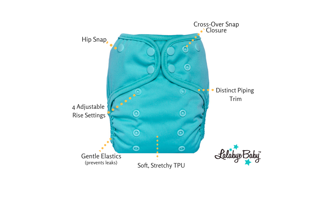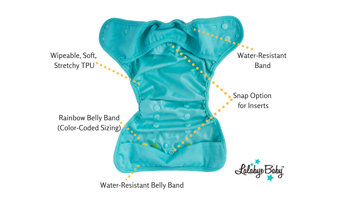 • Does not include absorbency (a cloth diaper Cover is purely a water-resistant diaper shell; it contains no absorbency, so be sure to add your favorite absorbent material before use, such as our snap-in Lalabye Baby Bamboo Inserts, Stay Dry Bamboo Inserts, or LalaLu Fitted, or other prefolds, flats, preflats, or flour sack towels)