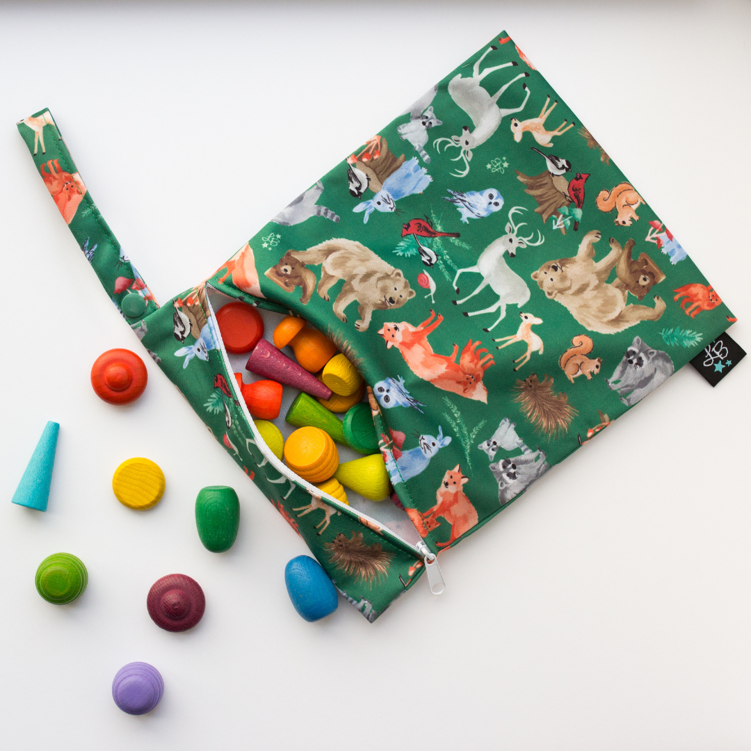 • Use it for cloth diapers, toiletries, travel, make-up, extra change of clothes, toys, mama cloth, first aid kit, game pieces etc. The possibilities are endless. Perfect for those early newborn appointments- fits a changing mat, two newborn diapers, and wipes!